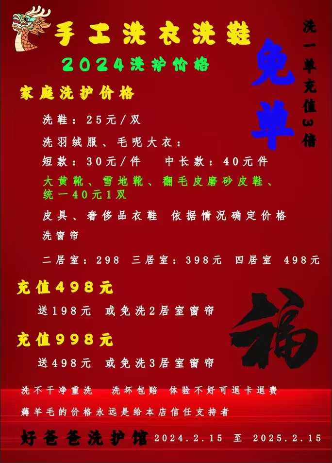 在此可做顾客网站推广 按年收费:2000元/年 在此仅做个人网站或个人业务宣传,需要独立开发网站的 私信详聊 洗衣洗鞋 找好爸爸洗护 上门取送 顾客办1000元洗护卡 恒大帝景小区顾客8折洗护 周边小区统9折 13652606504 同微号 |